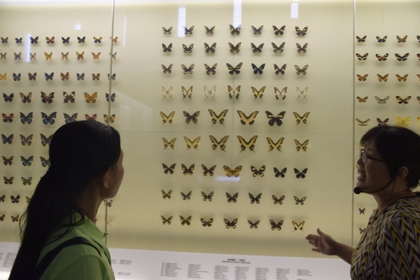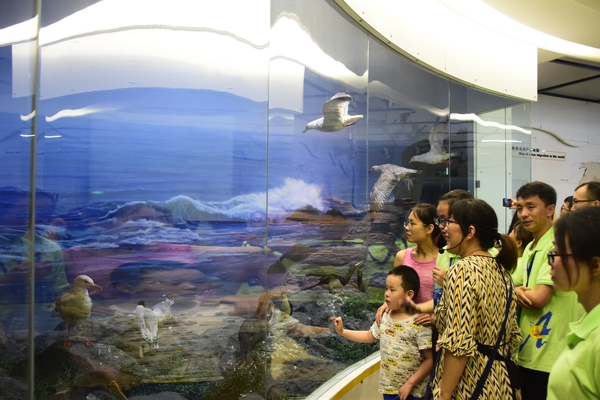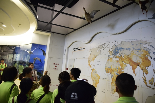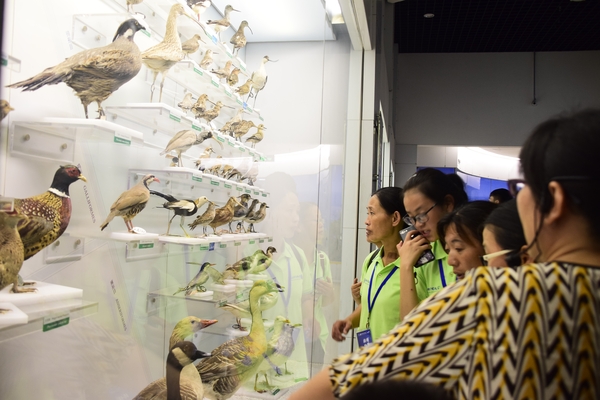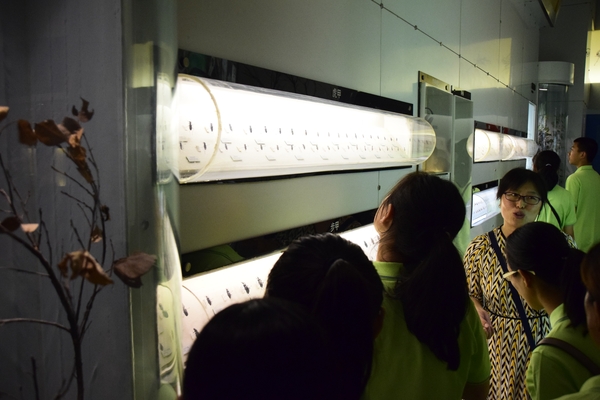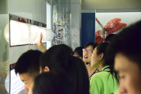 下午1点,全体成员来到国家动物博物馆,汪前进教授帮忙联系了中科院动物所的聂老师为大家讲解。面对博物馆内诸多精美标本,大家或认真聆听解说,或驻足端详展品。从昆虫区到鸟类厅,再到鱼类两栖分馆,两个半小时的参观过程中,营员们领略到地球上物种的丰富多彩,见识了大自然的千姿百态。