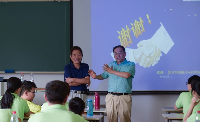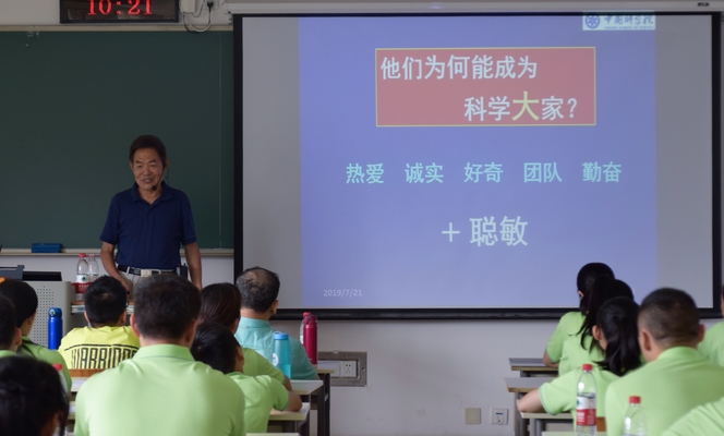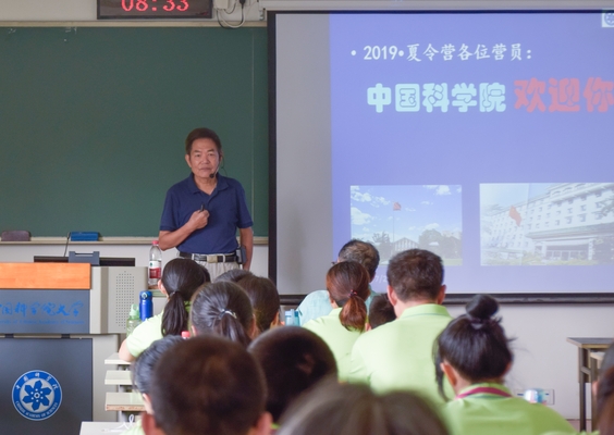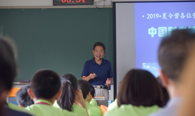 不到上午8点半,中科院原党组副书记、中科大原党委书记郭传杰教授便已来到玉泉路校区教学楼305教室。在随后的近三个小时里,75岁高龄的他坚持站立,为大家带来了一场精彩的讲座。郭老师结合自身见闻,并引用诸多科学家投身科研事业的故事,向大家传授了成为科学大家应具备的种种品质,鼓励各位营员踏上科研之路,成为创新人才。
