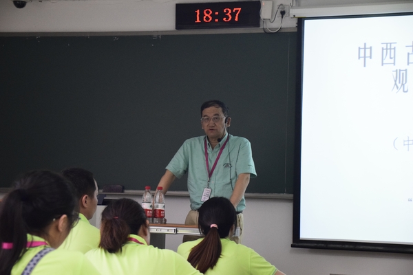早上六点多,所有学员似乎很快都扫除了昨日的疲惫。吃过早餐来到教学楼305教室,看见一位眼敛神光的老人神采奕奕的在和汪前进教授准备课件。活动组织者隆老师介绍了这位老人即原中国科技大学党委书记郭传杰老教授。郭老教授讲的主题是如何才能成为科学大家,在聪敏的前提下还得热爱,诚实,质疑与创新,具有团队精神且勤奋才可能有所成。老教授今年已经75岁高龄。仍然巍然而立,激情高昂的讲了两个多小时,讲了他和诸位科学大家的故事,谈了如吴文俊教授对知识学术孜孜不倦的追求,竺可桢教授连续38年不间断的日记,汤佩松、王竹溪教授领先于国外科学家25年的科学研究为国争光,潘建伟教授带领的领先世界的量子研究团队,严济慈教授的勤奋治学精神。两个多小时精彩的讲课,半小时的提问交流环节。让大家充分领略了这位科学大家的风采!为了这次助学助教活动,郭老教授在下午要到云南讲学之前挤出时间来给我们讲课,所有营员都感受到了老人对我们欠发达地区的师生们的关怀与热情。下午,几位志愿者冒着烈日带领大家参观了国家动物博物馆。我因为关节炎发作,踝关节,膝关节均疼痛。没有跟上大部队听到国家动物研究院的老师的亲自讲解,甚为遗憾。晚上六点半,原来联系好的温元凯教授讲《诺贝尔是怎么练成的》。却因联络时出了失误,温教授赶到另一个校区,来不及赶过来。临时改为汪前进教授讲《中西古海图的本质差异》。汪教授从西汉时的古海图讲到宋朝的禹迹图、华夷图,展示了多幅地理图拓片图片,讲到了只有他老人家见过的大明混一图。跟随着汪教授的讲解,思绪在历史的长河中随引而流。感受着中华文明的博大精深,中华民族开拓、探索的精神。明白了国家领土、领海的历史演变渊源。两位老教授都是连续两个多小时的讲课让我感动!在知识上受益匪浅的同时深深感受到了本次活动每一位组织者、参与者的深情与真挚付出!