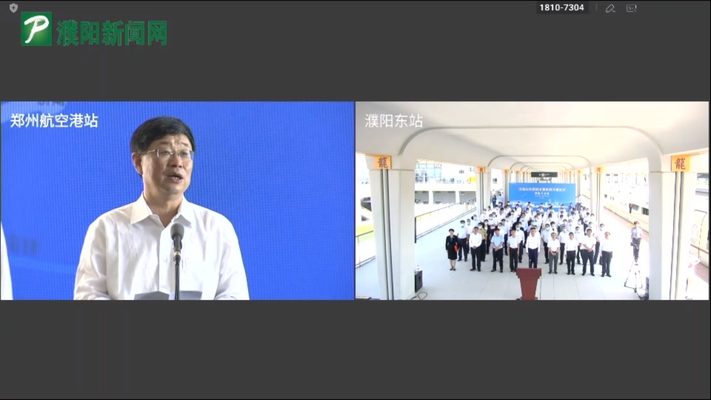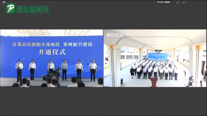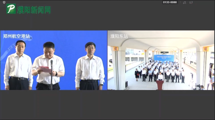 9 点 35 分,画面将设在郑州航空港站的主会场与濮阳分会场并置。首发仪式进入第二阶段。